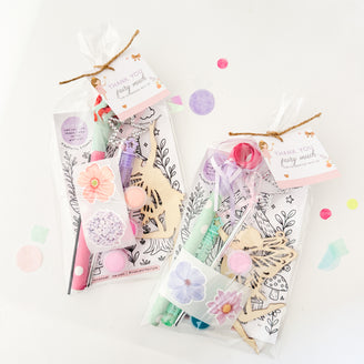 Thank your guests for fluttering by to your party with our Butterfly Party Favor Bags! Each bag is packed with bubbles, a tattoo, paints, a paintbrush, a party blower, 2 crafts, and gem stickers for decorating. Perfect for Butterfly, Princess, Garden, Spring, or Enchanted Theme Parties!